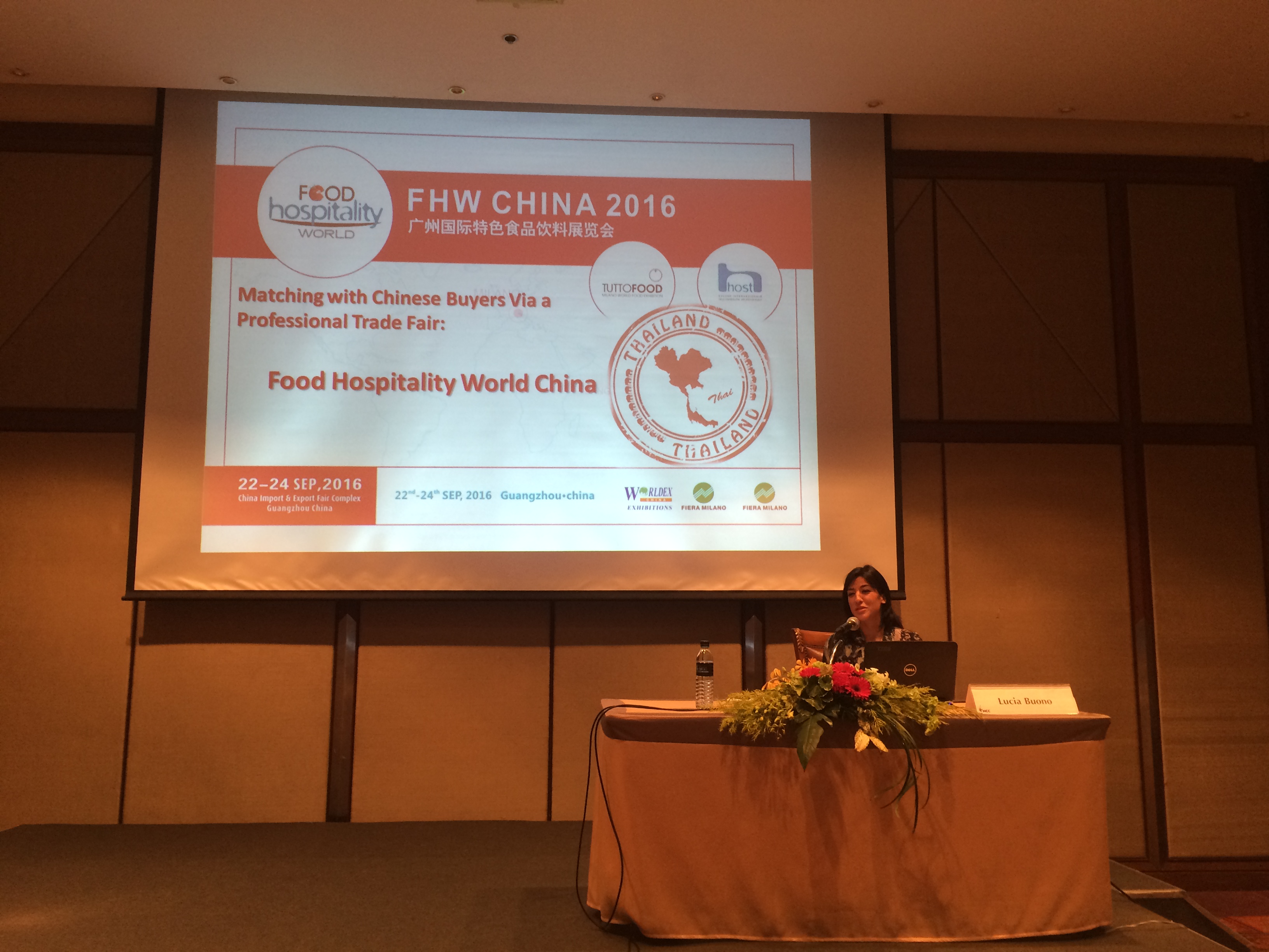 Then Ms Lucia Buono, the overseas promotion manager, talked on the subject of Matching with Chinese Buyer via a Professional Trade Fair. This topic covered the strength of FHW CHINA 2016. Exhibitors would see tremendous scale and achieve interesting contact through the show. As consequence, most of audiences showed enthusiasm and asked for more registration details.